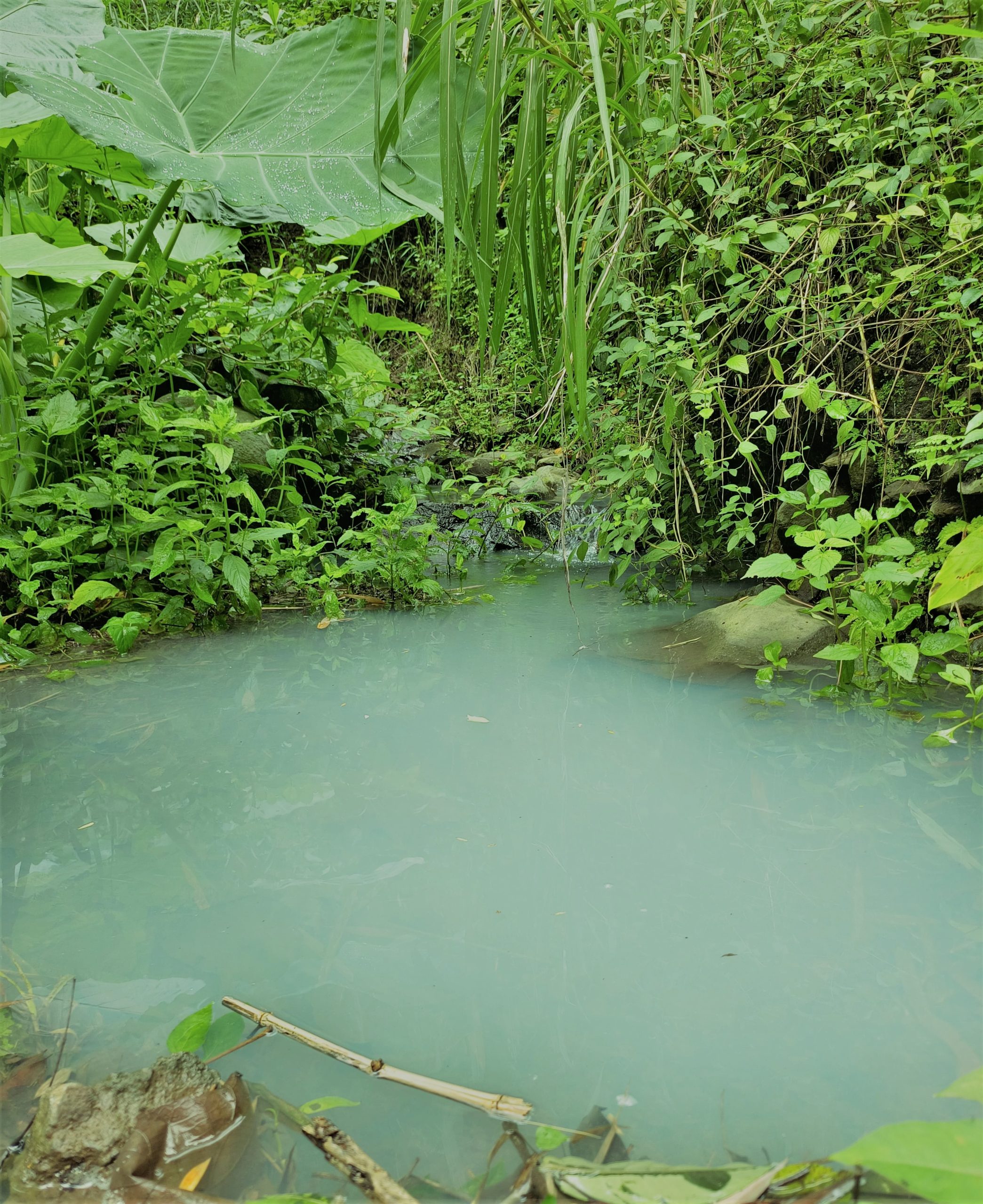 lama, hanya butuh waktu sekitar 15 menit. Treking ke Watu Doplang, selain bisa bertemu hutan, kita juga akan bertemu kali kecil yang airnya berwarna putih