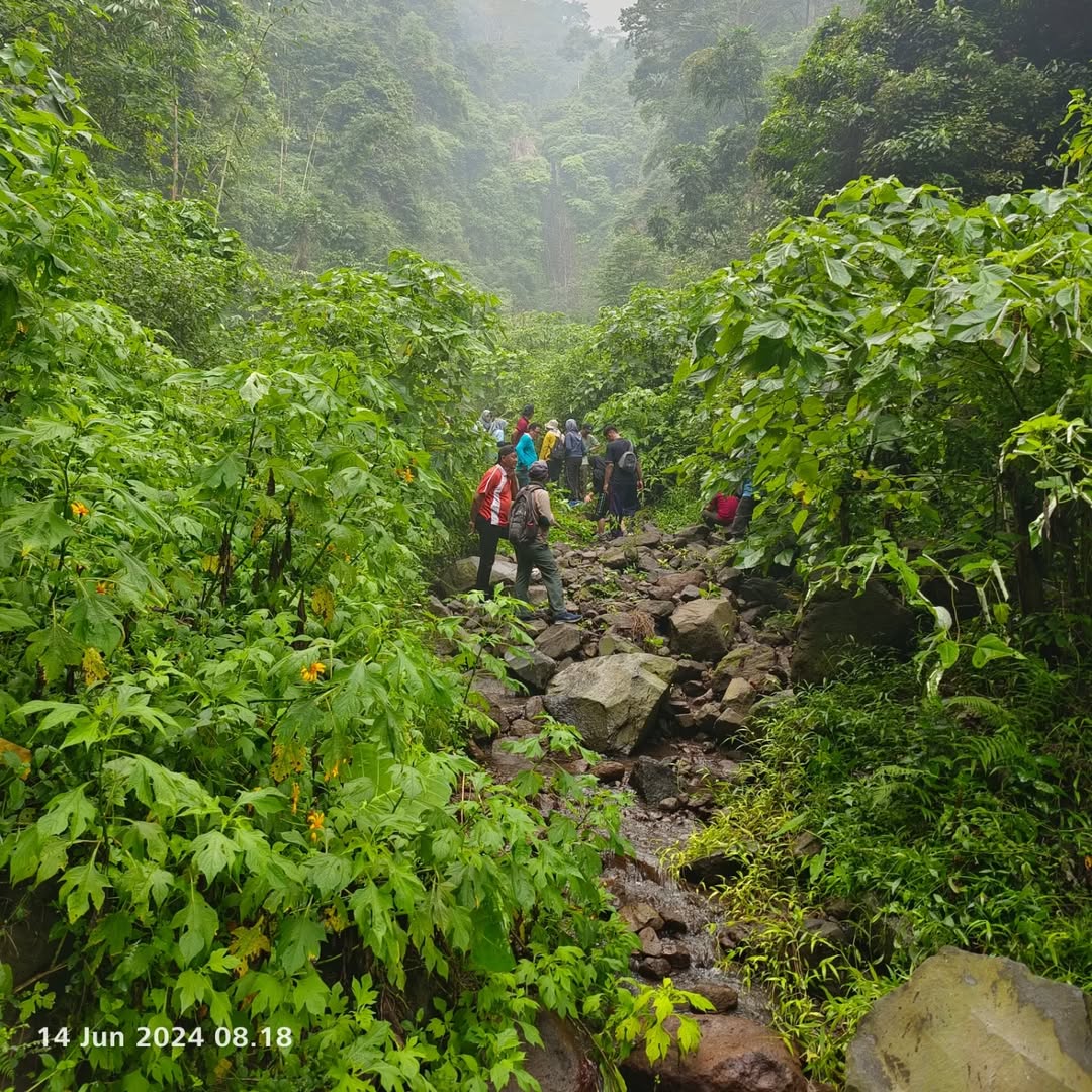 Penanaman dilakukan di kawasan Curah Sabrangan, jalur pendakian Penanggungan via Genting. Momen ini terasa istimewa karena jalur tersebut hanya dibuka setahun sekali, memberi kesempatan langka untuk menjelajah lebih dalam ke wilayah hulu. Seusai menanam, peserta diajak menyusuri aliran kali dari Air Terjun Sabrangan, menyaksikan langsung jernihnya air yang menjadi sumber kehidupan bagi dusun dan sekitarnya.