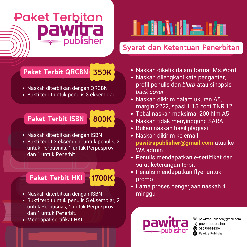 Pawitra Publisher adalah penerbit yang berada dalam naungan PT Pawitra Baskara Abadi. Kami berdiri sejak 2021 dan eksis menerbitkan buku-buku